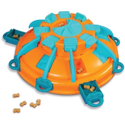Geen enkel speelgoed is onverwoestbaar. Laat geen speelgoed achter bij huisdieren zonder toezicht. Verwijder en vervang speelgoed als het beschadigd is. HOUD ALTIJD toezicht op uw hond, leer uw hond hoe het spel werkt. Laat uw hond niet alleen met een snoeppuzzel (max 5-10 minuten, dan is het denkvermogen op en gaan ze kauwen of ze vinden het niet meer leuk), laat uw hond niet op het spel of de stukjes kauwen. Inspecteer op schade en verwijder indien gebroken. Alleen voor honden, geen kinderspeelgoed. Wanneer leeg bewaren tot volgend gebruik onder toezicht. Stop er mee wanneer de hond het nog leuk vind.