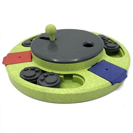 De Circle heeft diverse makkelijke elementen maar de draaischijf is best wel pittig. U kunt het spel ook zonder de draaischijf te gebruiken spelen, u kunt dan in de klepjes en schijfjes aan de buitenkant lekkers verstoppen. Wanneer u in de draaischijf lekker doet en de hond gaat draaien dan kunnen ook de brokjes in de verschillende onderdelen aan de zijkant komen. Leuk spel!